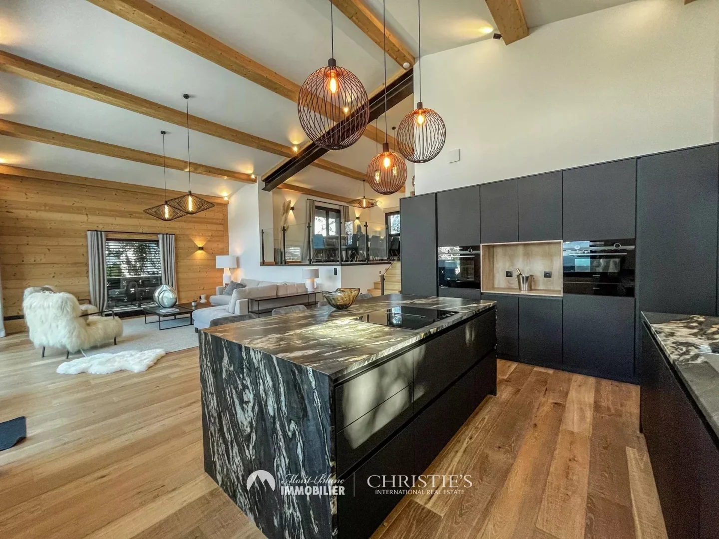 - The cathedral living room, bathed in light, opens onto a vast 49 m² south-west-facing terrace, ideal for soaking up the sun and enjoying the Alpine panoramas.