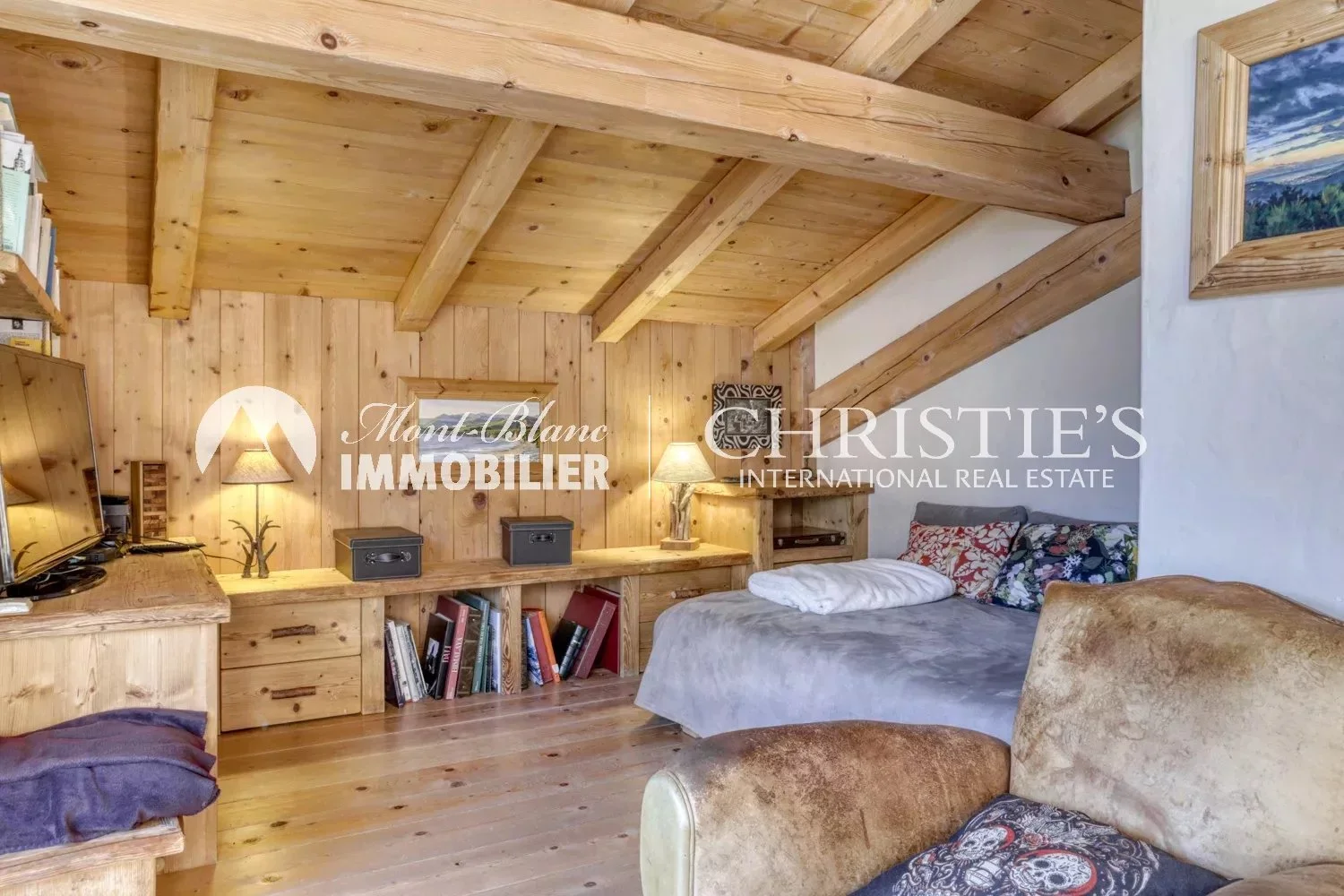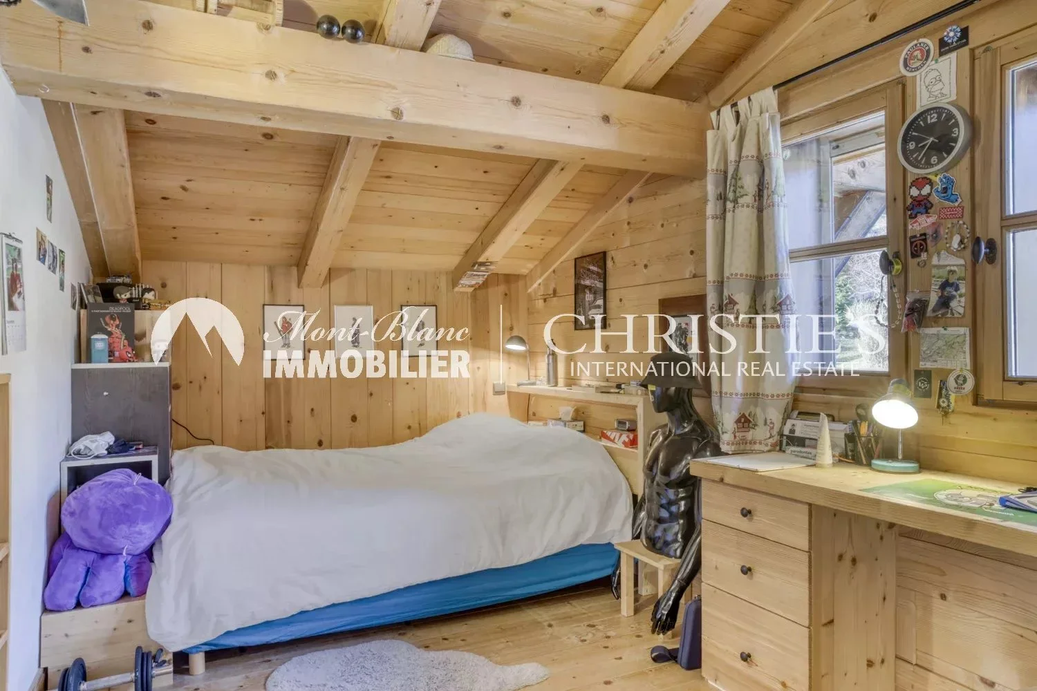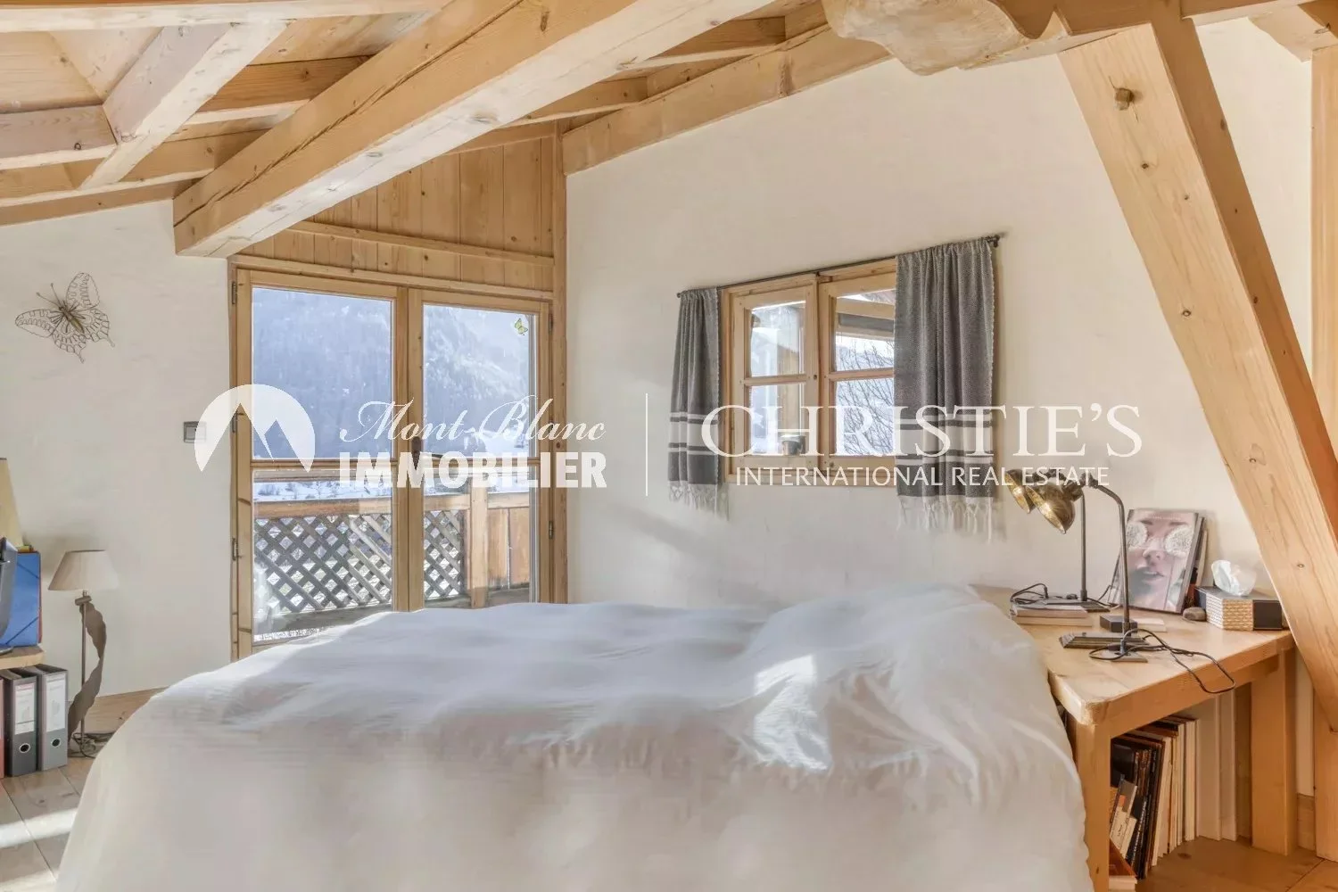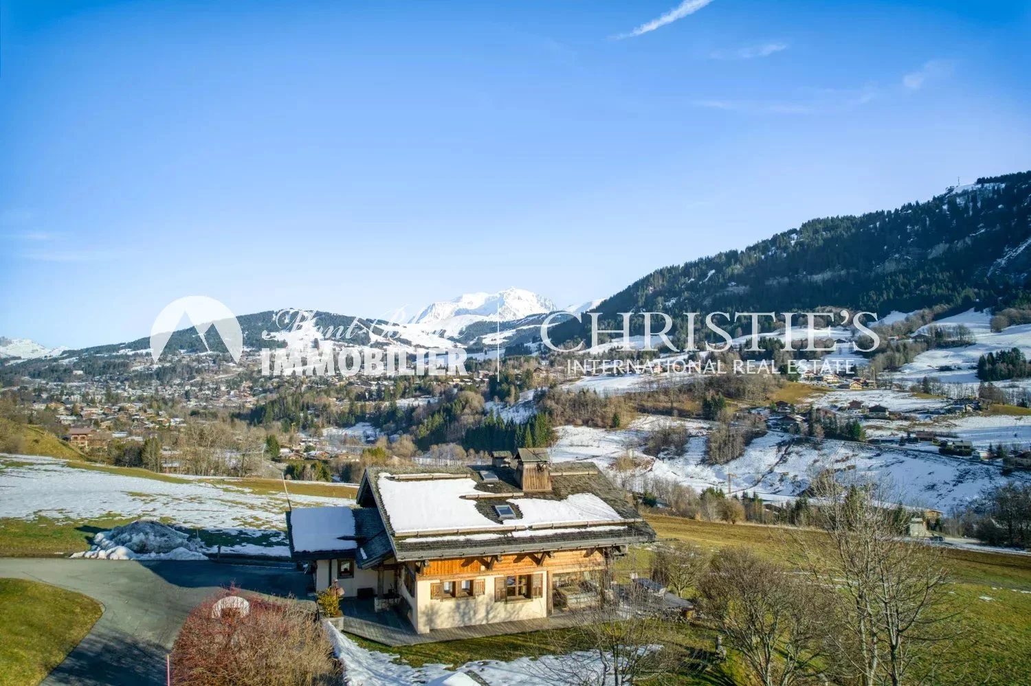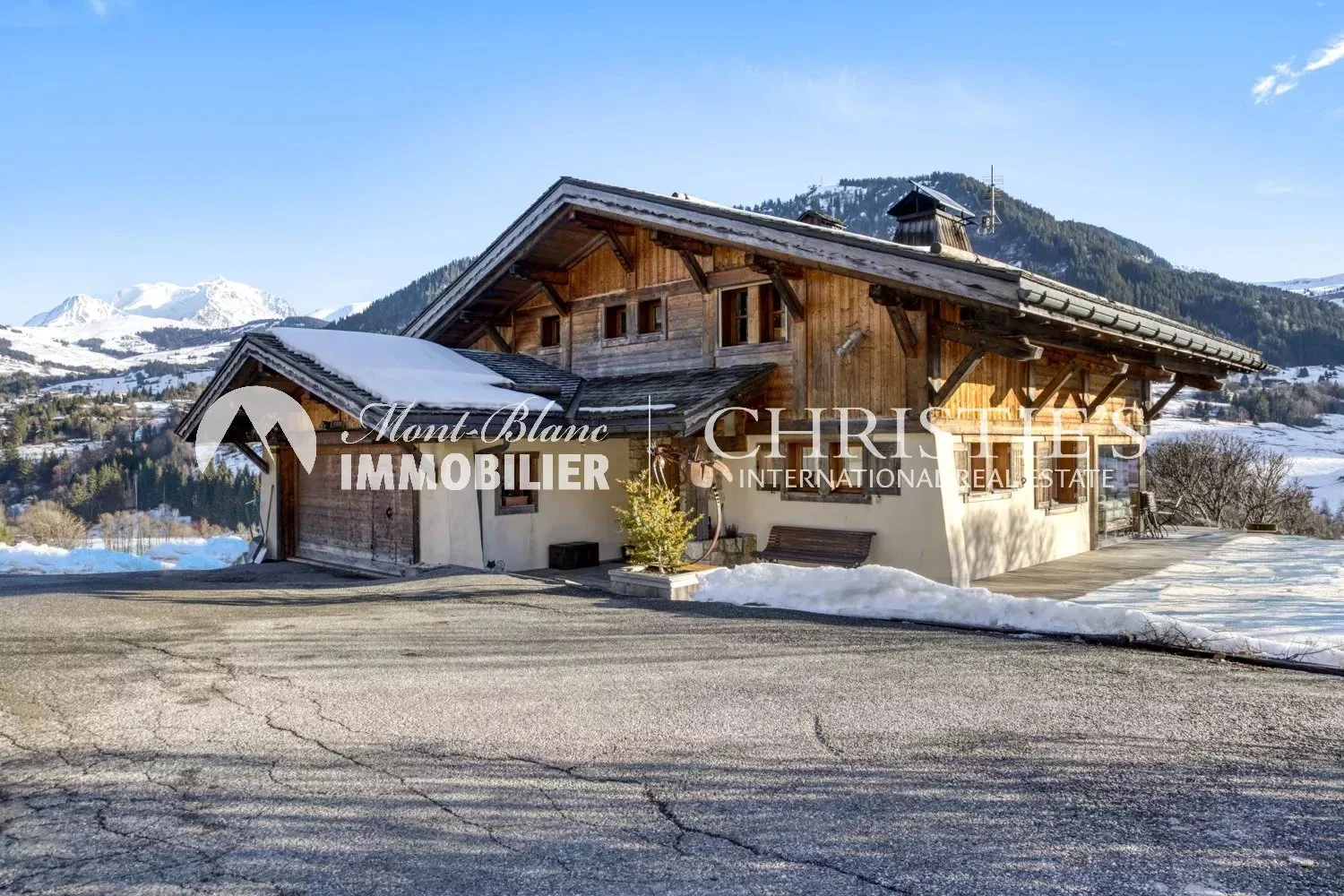 Built in 2003, this Alpine-style chalet with a total surface area of approx. 373 m² enjoys a privileged location on the edge of an agricultural zone, guaranteeing rare tranquility and unspoilt views. South-facing, it enjoys optimum sunshine and an exceptional panorama: Mont Blanc is a permanent fixture here, changing with the seasons.
