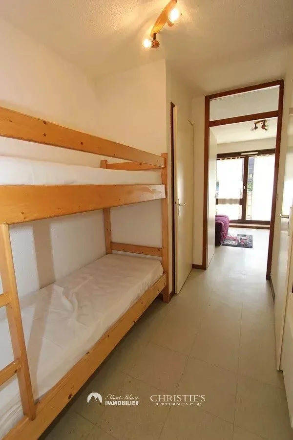 Discover this welcoming 21.53 m² studio located in the sought-after sector of Les Gaillands in Chamonix-Mont-Blanc. Composed of a bright main room, it offers a warm atmosphere thanks to its wooded furnishings and direct access to a sunny balcony, ideal for enjoying the view and fresh mountain air.